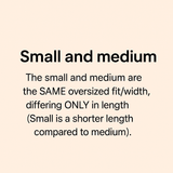 The small and medium are the SAME oversized fit/width however differs ONLY in length (Small is a shorter length compared to medium).